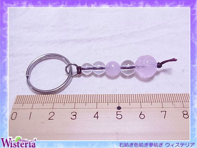 かわいらしいローズクォーツの蓮カットと水晶のキーホルダーです。